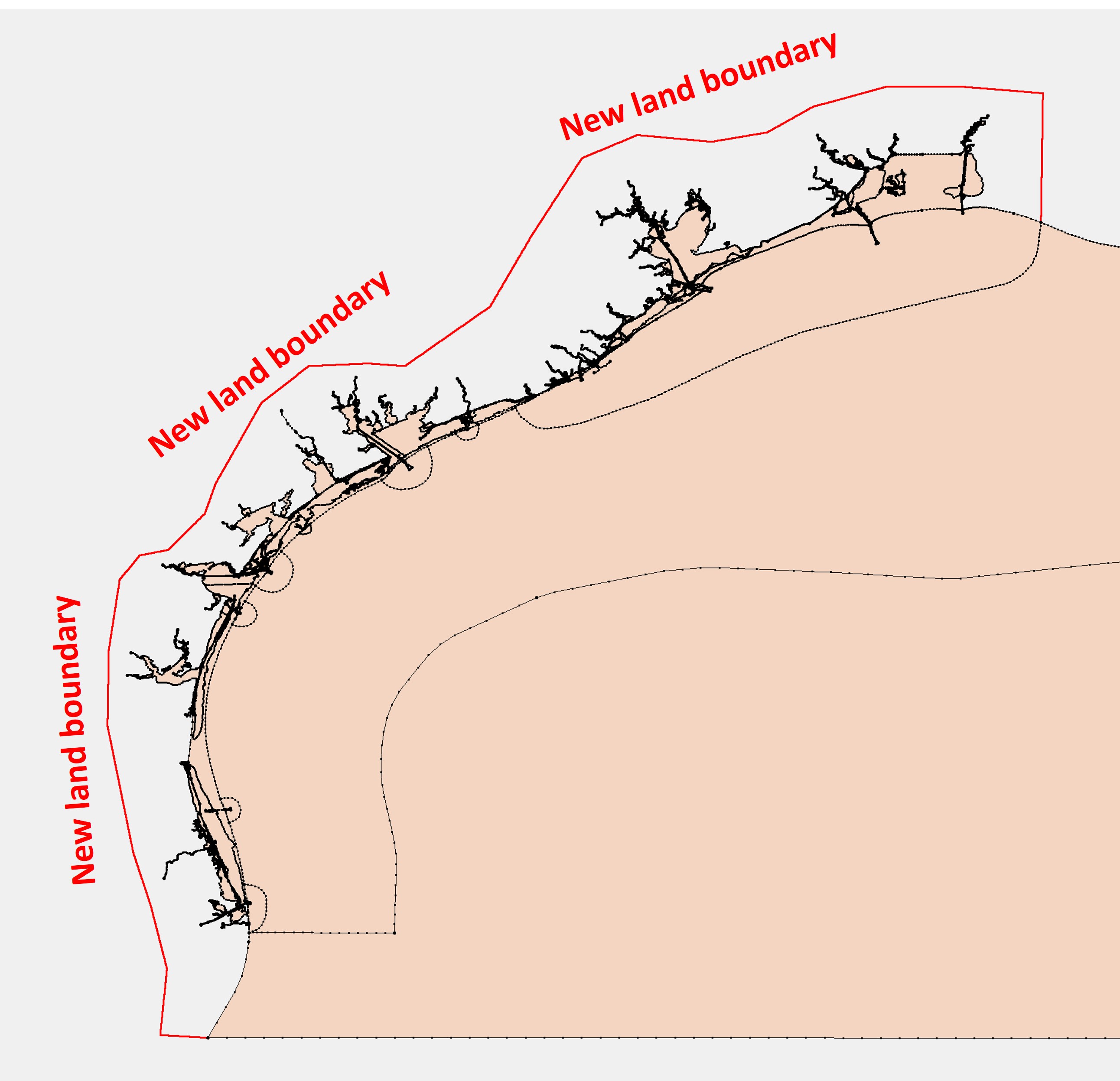 Define a boundary that delineates the landward limit of the new domain, for example: